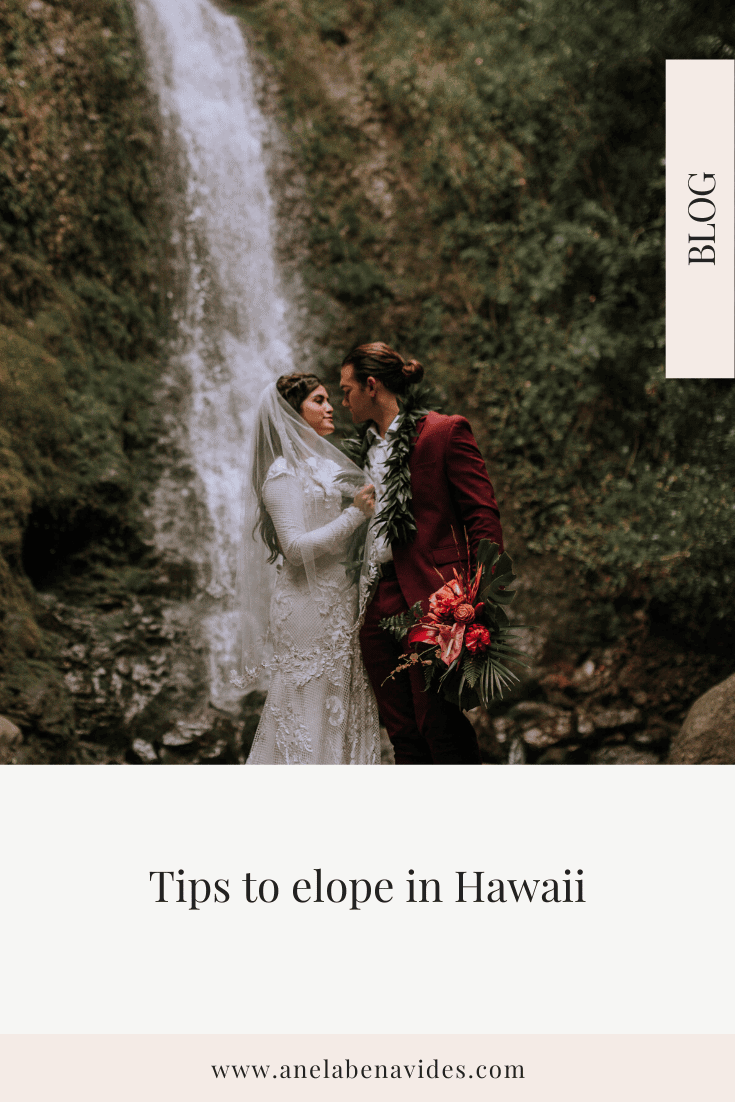 Alright, let’s get to it! This is absolutely CRUCIAL to eloping in Hawaii or anywhere! If you are eloping you have to realize that most likely it will be just you two, if not a very few close family members. Capturing the day from start to finish is crucial because if not you will have nothing to show your friends & family who were not able to attend. Imagine eloping in a gorgeous location away from home and going back with NOTHING TO SHOW?!!! That is my worst nightmare. If you are going to Elope in Hawaii be sure to splurge and hire an AMAZING Photographer + Videographer for your day! You don’t have much expenses to pay for being that it’s just you two. There are no guests to feed, no venue to cover, no decor you have to pay for or anything of that. So documenting your day should be a TOP PRIORITY. If your friends + family aren’t going to be apart of it or there to witness your big day at least give them AMAZING images/video to envision the entire thing from start to finish. Trust me you’re not going to want FOMO after the best day of your life.
