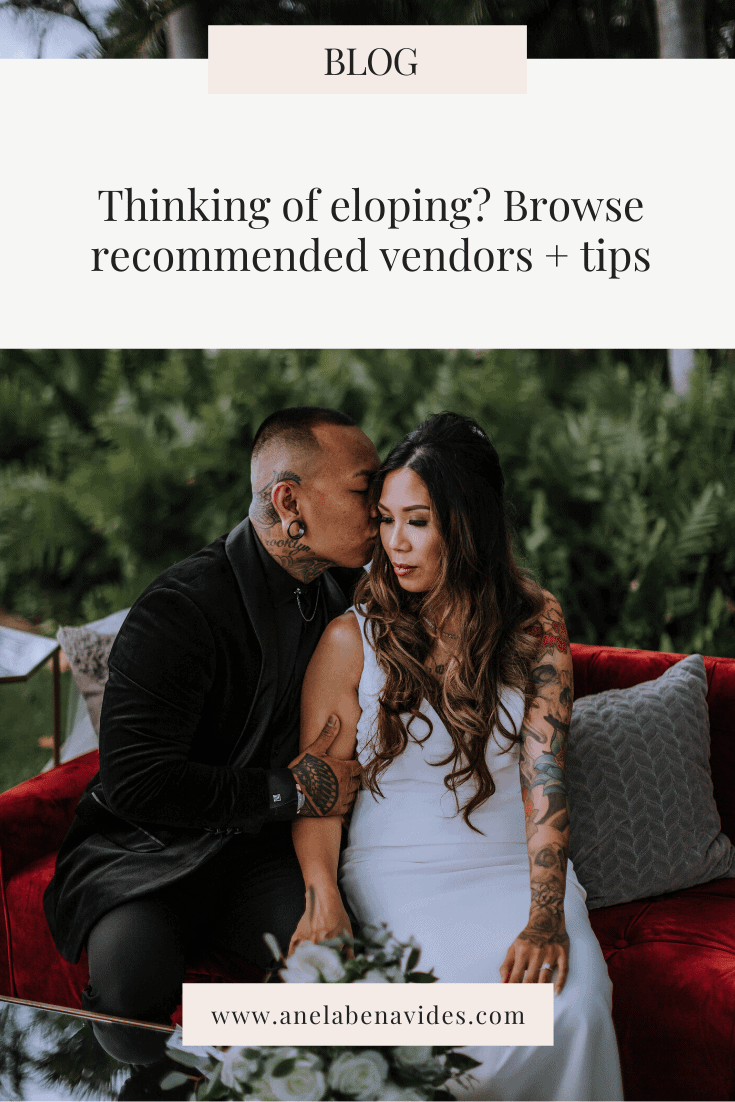 These are all vendors including: Florists, Hair & Makeup Artist as well as rentals if you decide to have any! It is crucial to pick vendors that know exactly what you’re looking for and are able to deliver that dream! Choose vendors that compliment your style and are able to accomodate your needs. Hawaii is HOT let me tell you, and with that being said you are going to want a BOMB HMUA that can make your hair + makeup stay the entire time without smudging or getting ruined thru the heat or rain! These aspects are so important to consider on your Elopement day.