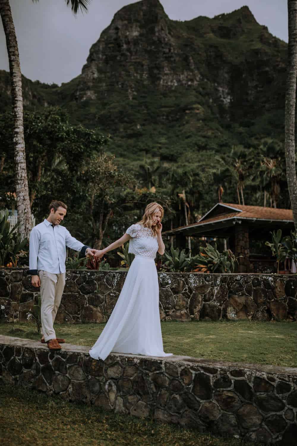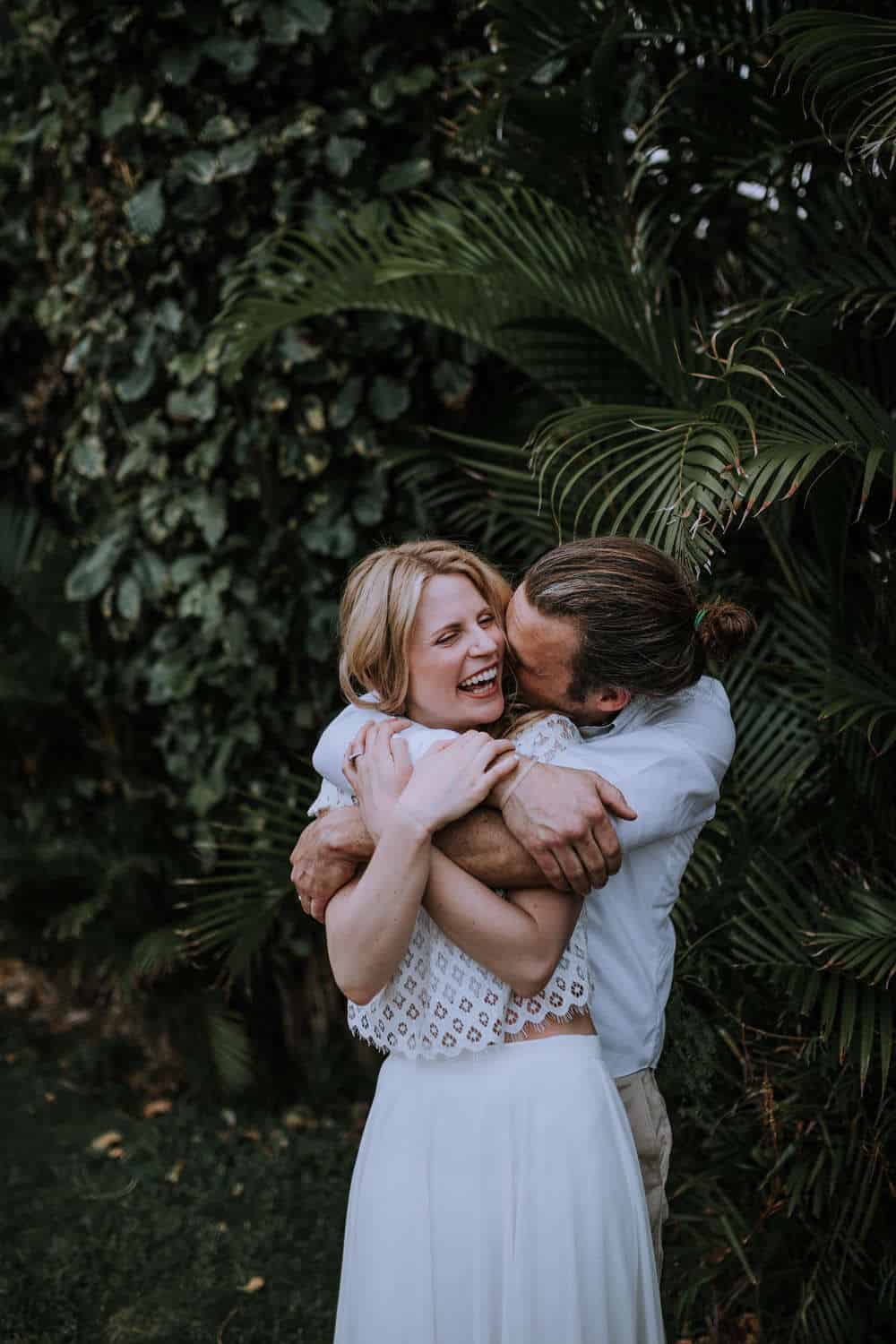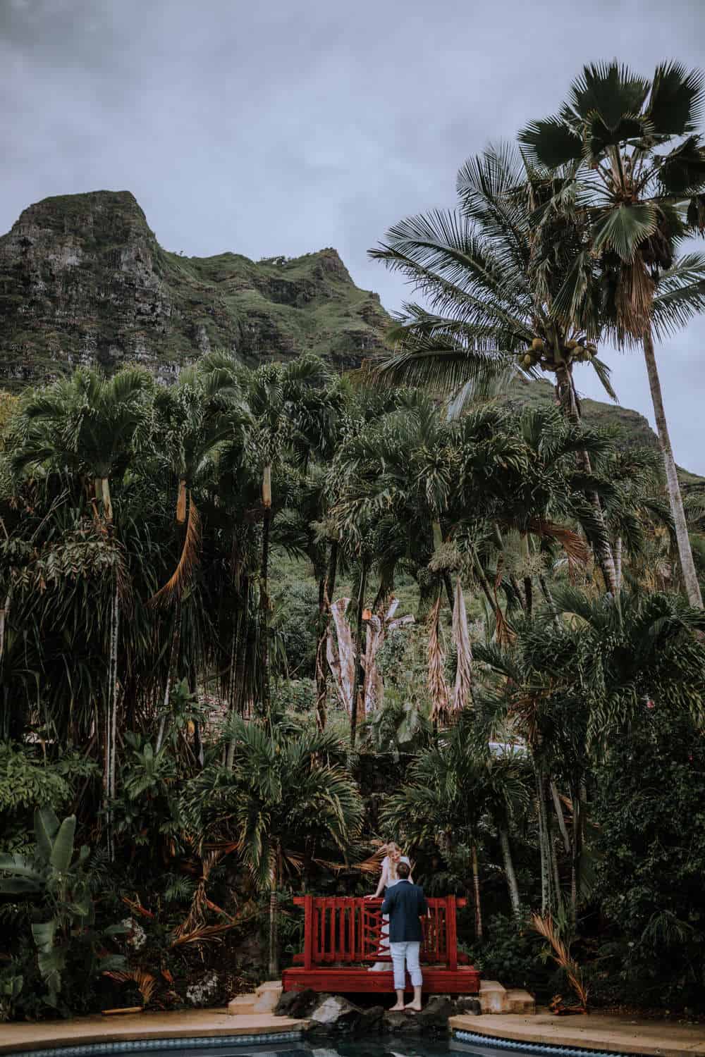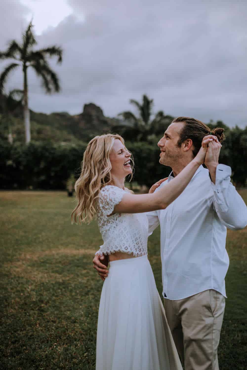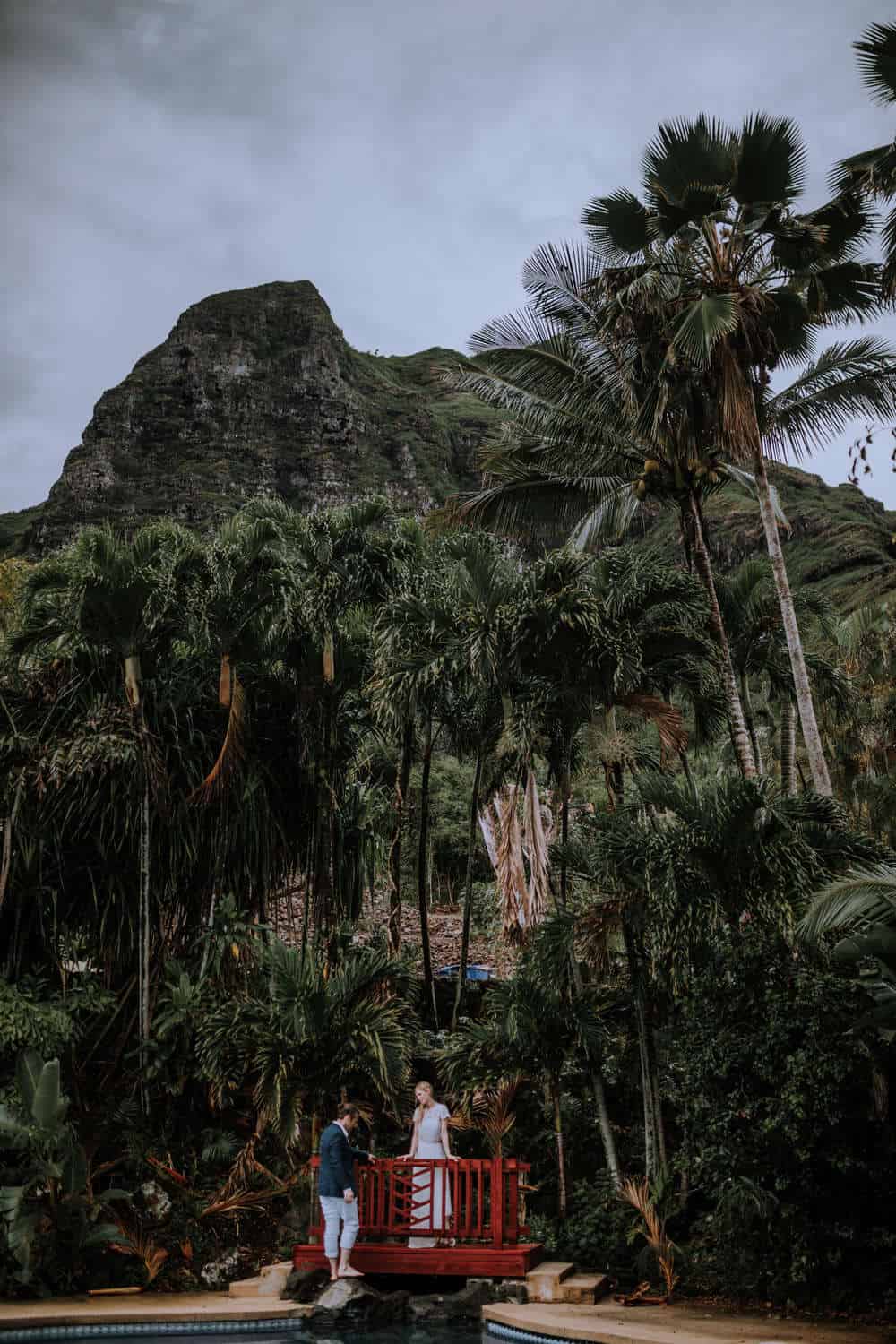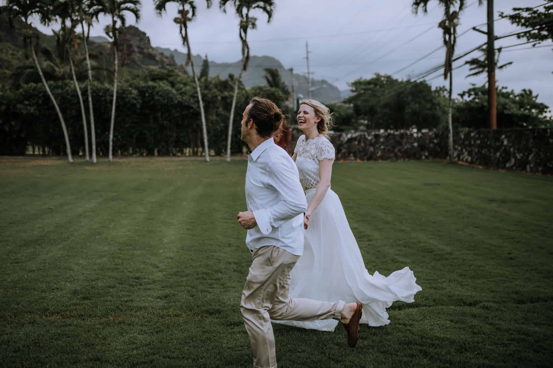 Having this all come together after planning for so long was such a dream come true for these lovers! They had friends & family travel from afar to witness their Elopement at a private home in Kaaawa. Stefanie & Joseph were a super laid back couple, down for whatever, wanted to head to the beach for photos in the pouring rain and had drinks + a dance party with their guests!