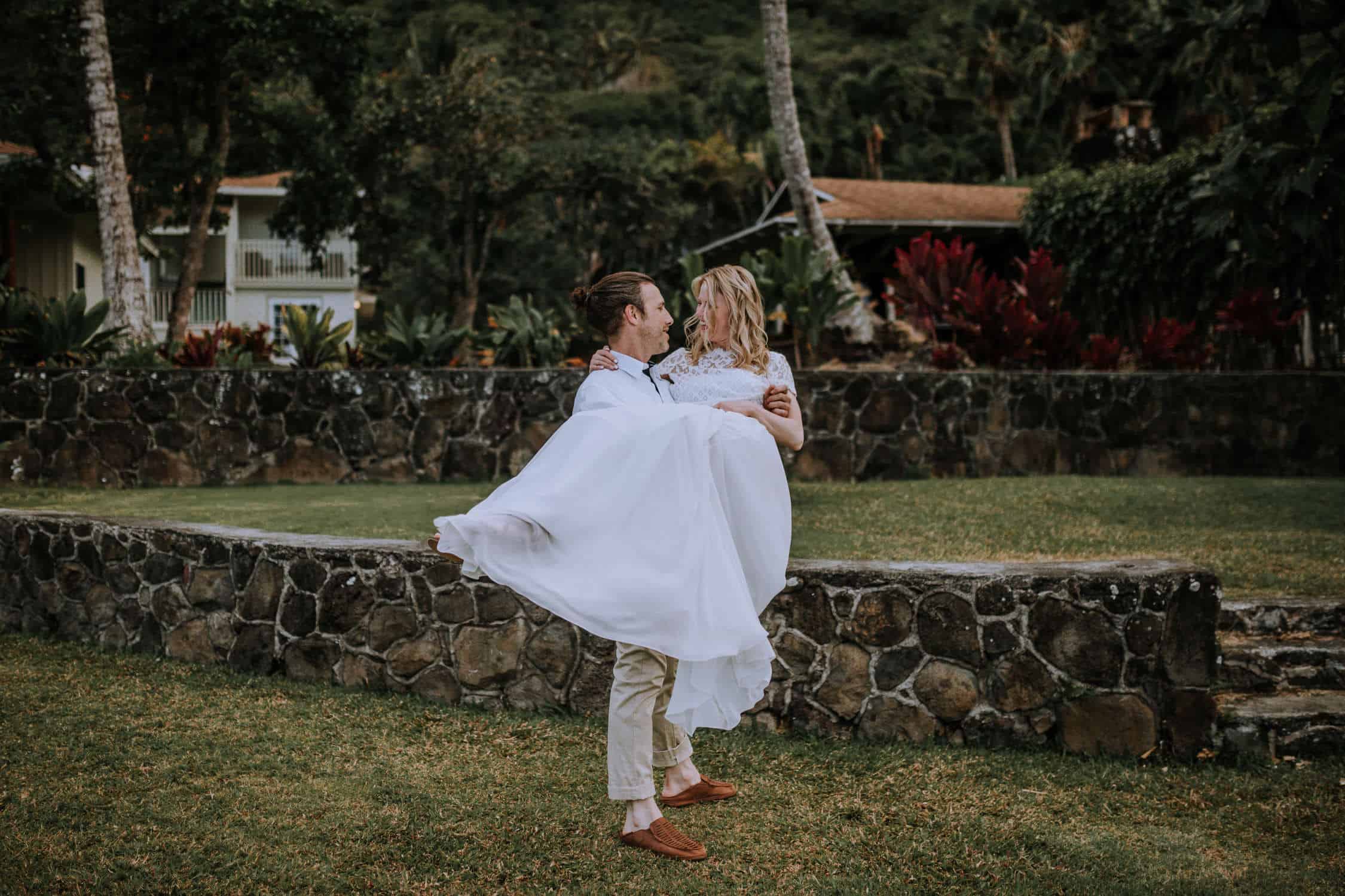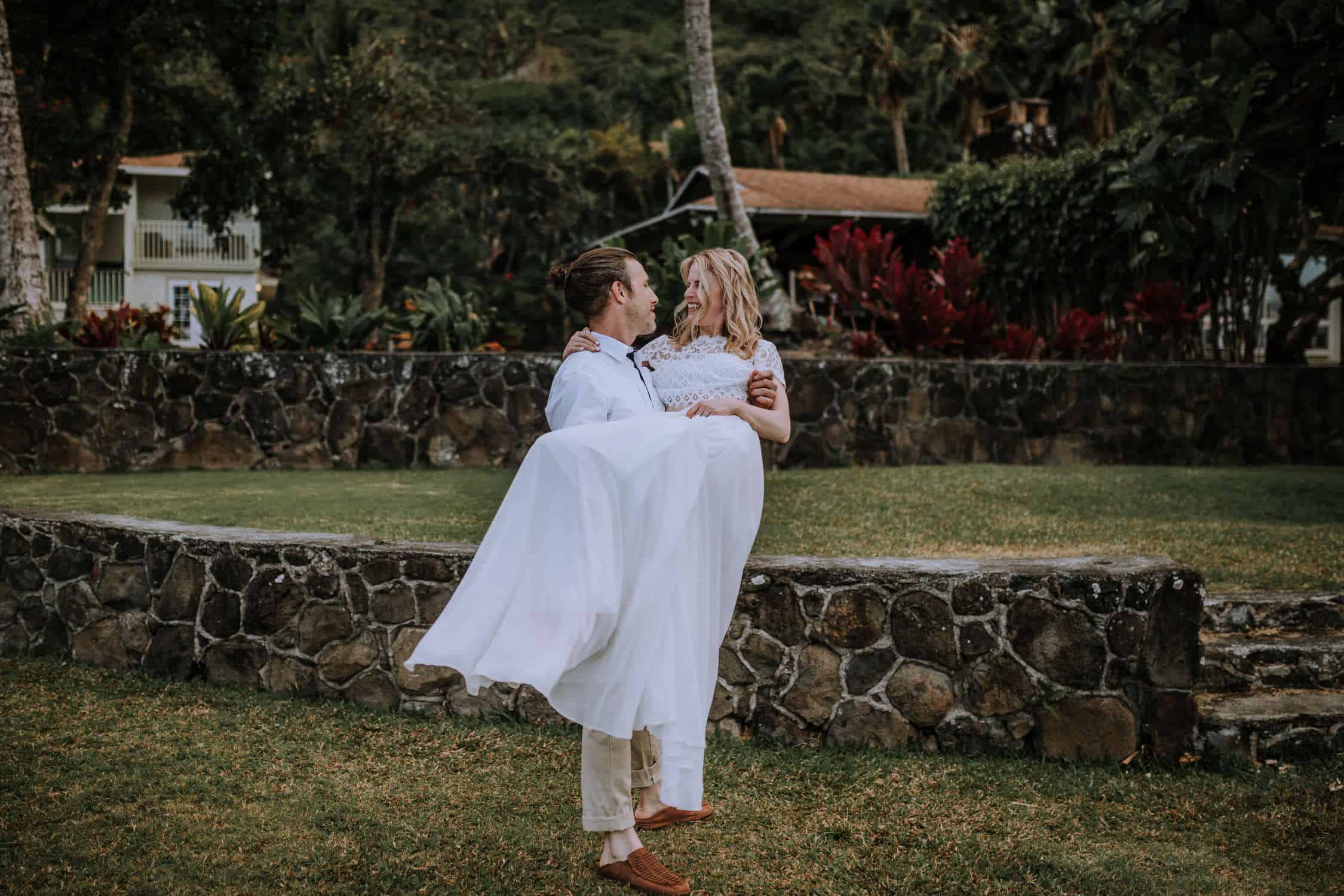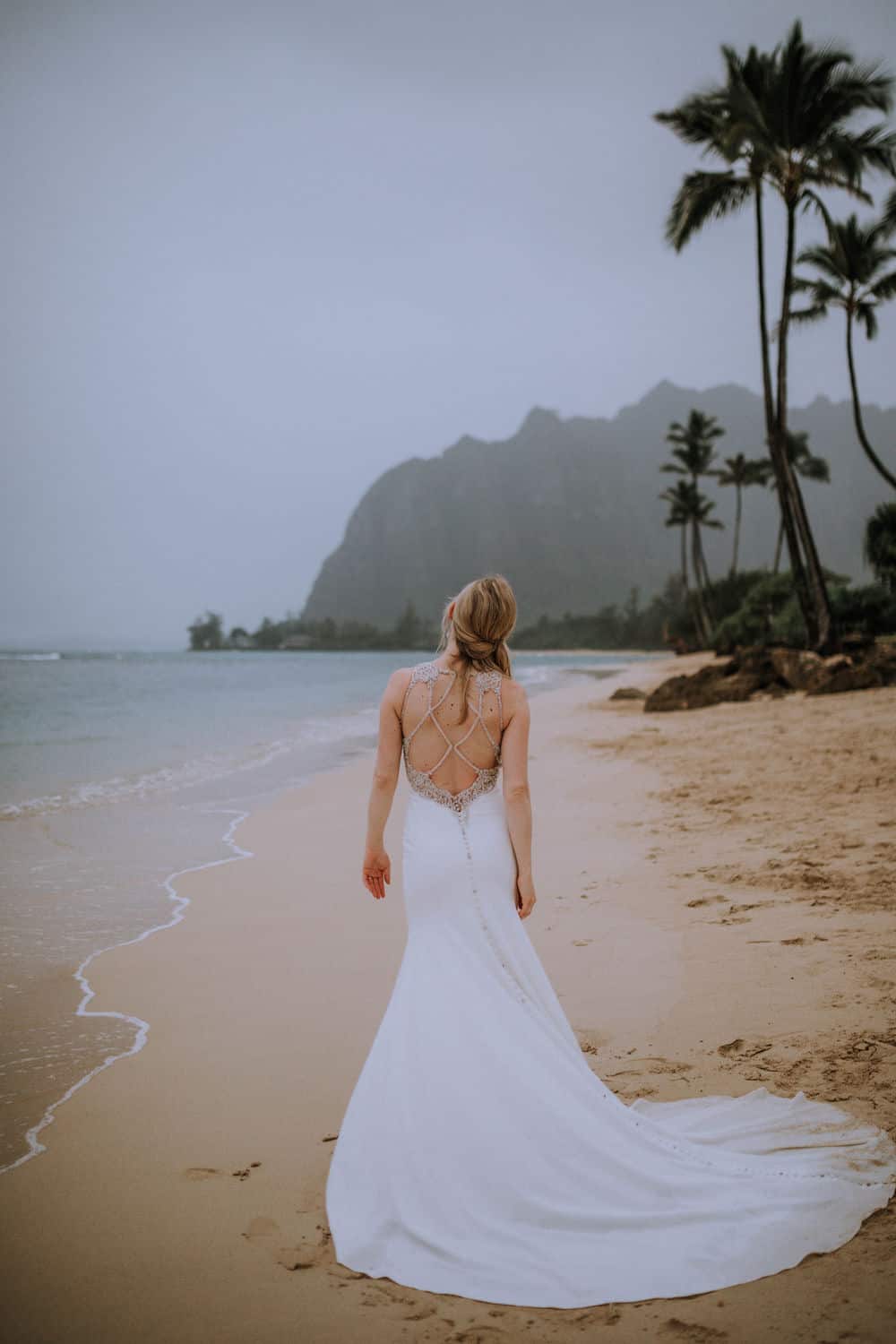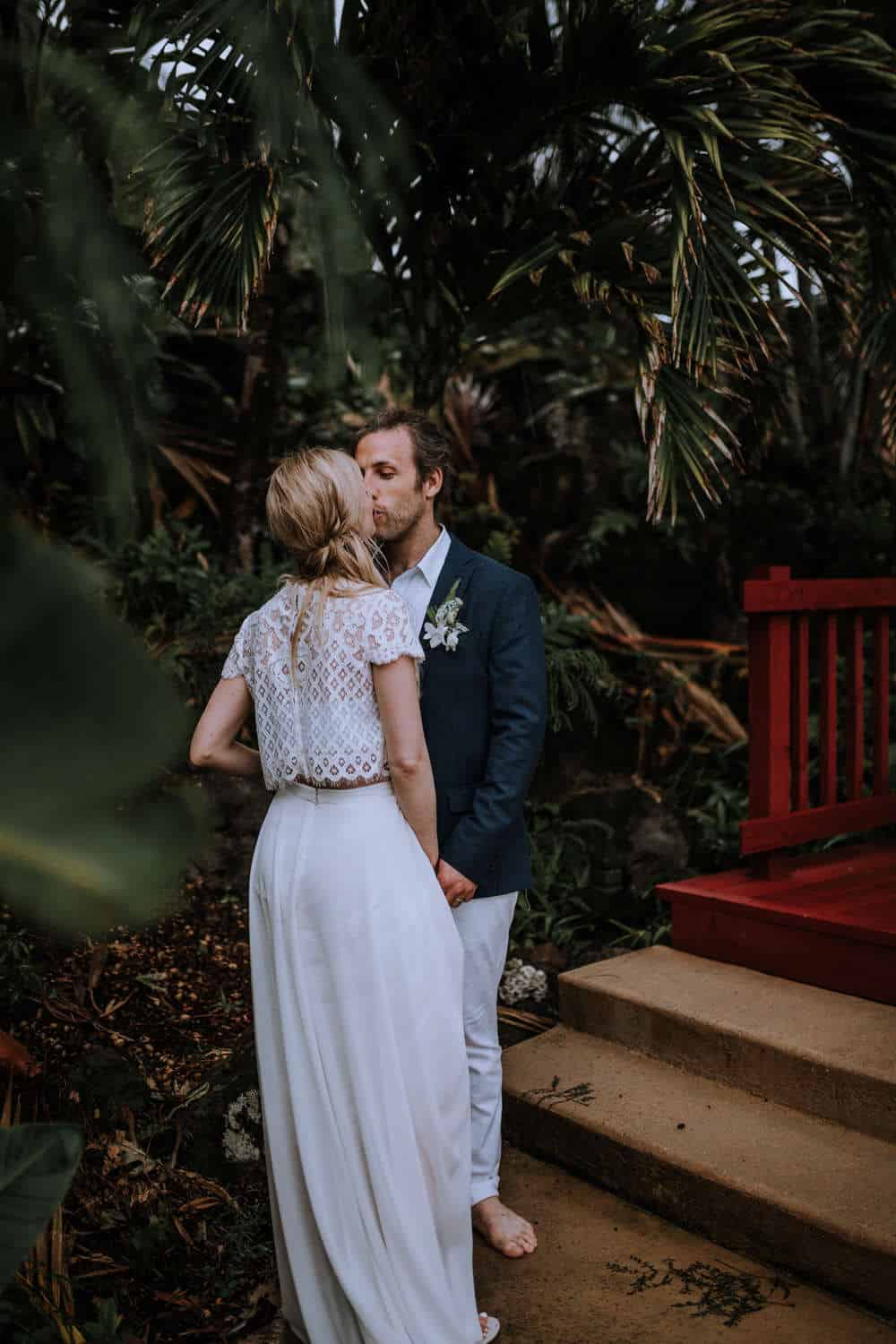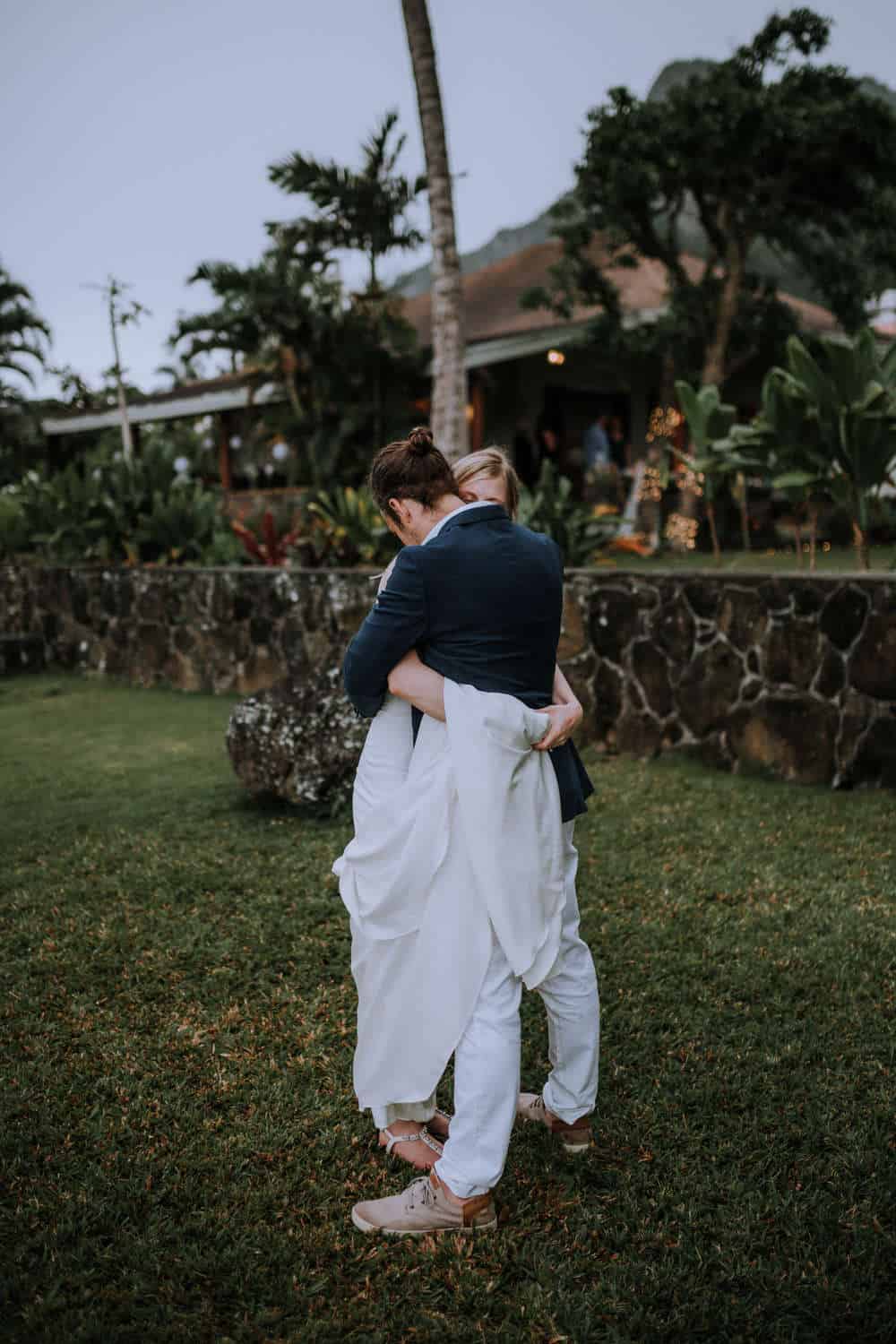 Having this all come together after planning for so long was such a dream come true for these lovers! They had friends & family travel from afar to witness their Elopement at a private home in Kaaawa. Stefanie & Joseph were a super laid back couple, down for whatever, wanted to head to the beach for photos in the pouring rain and had drinks + a dance party with their guests!