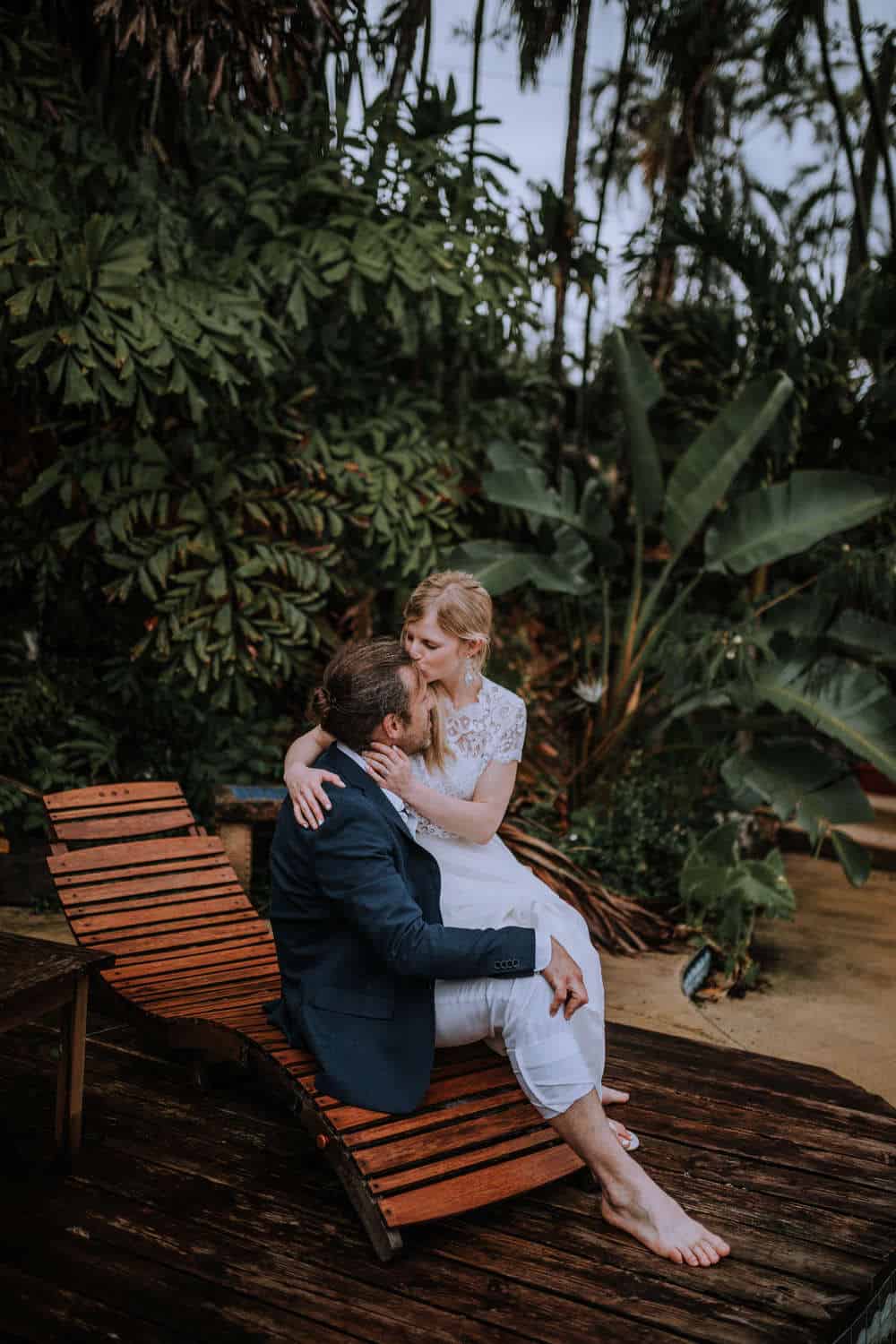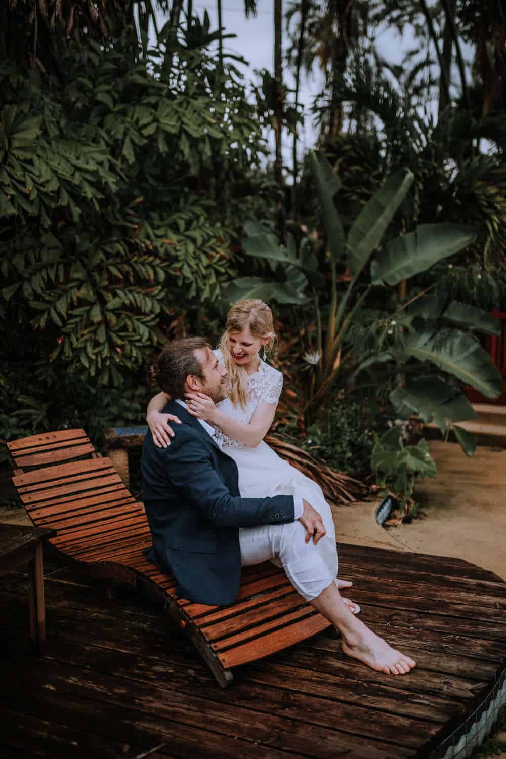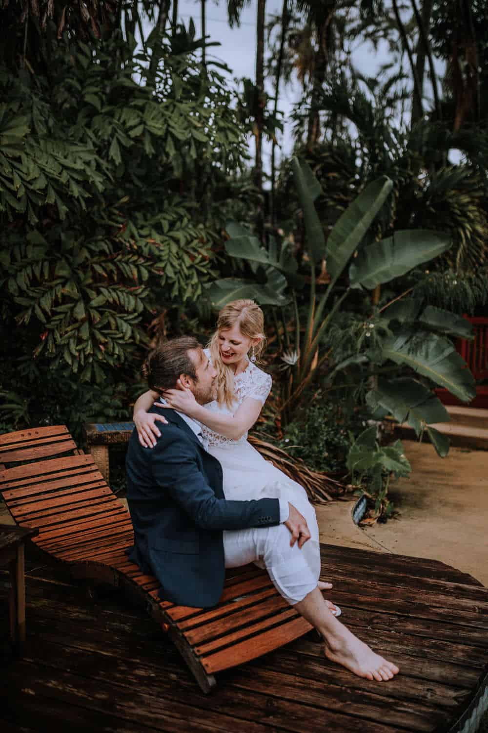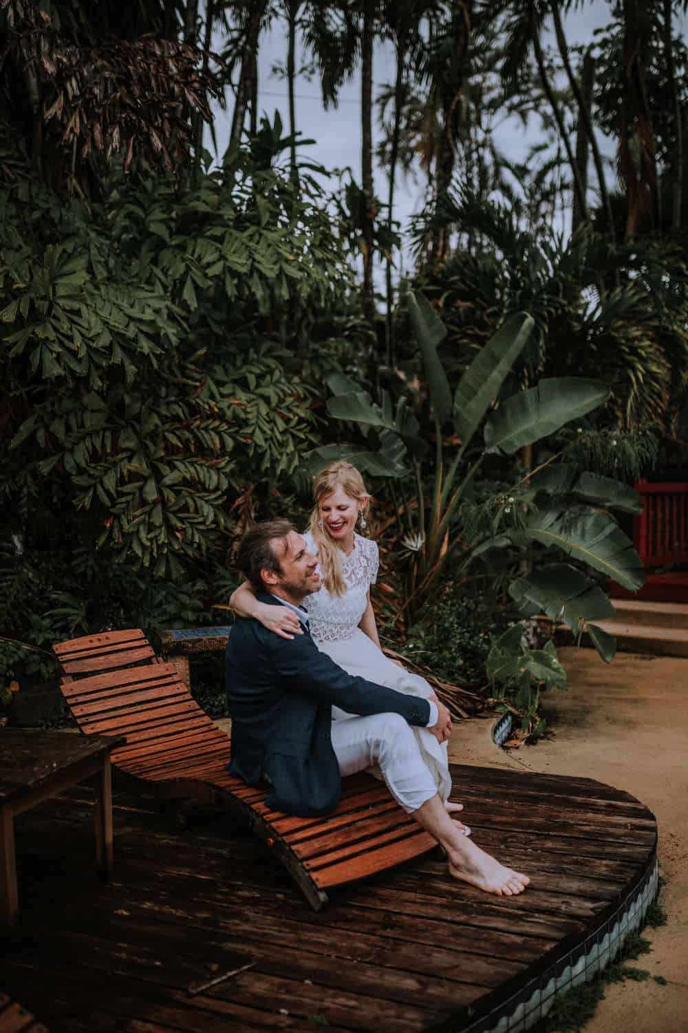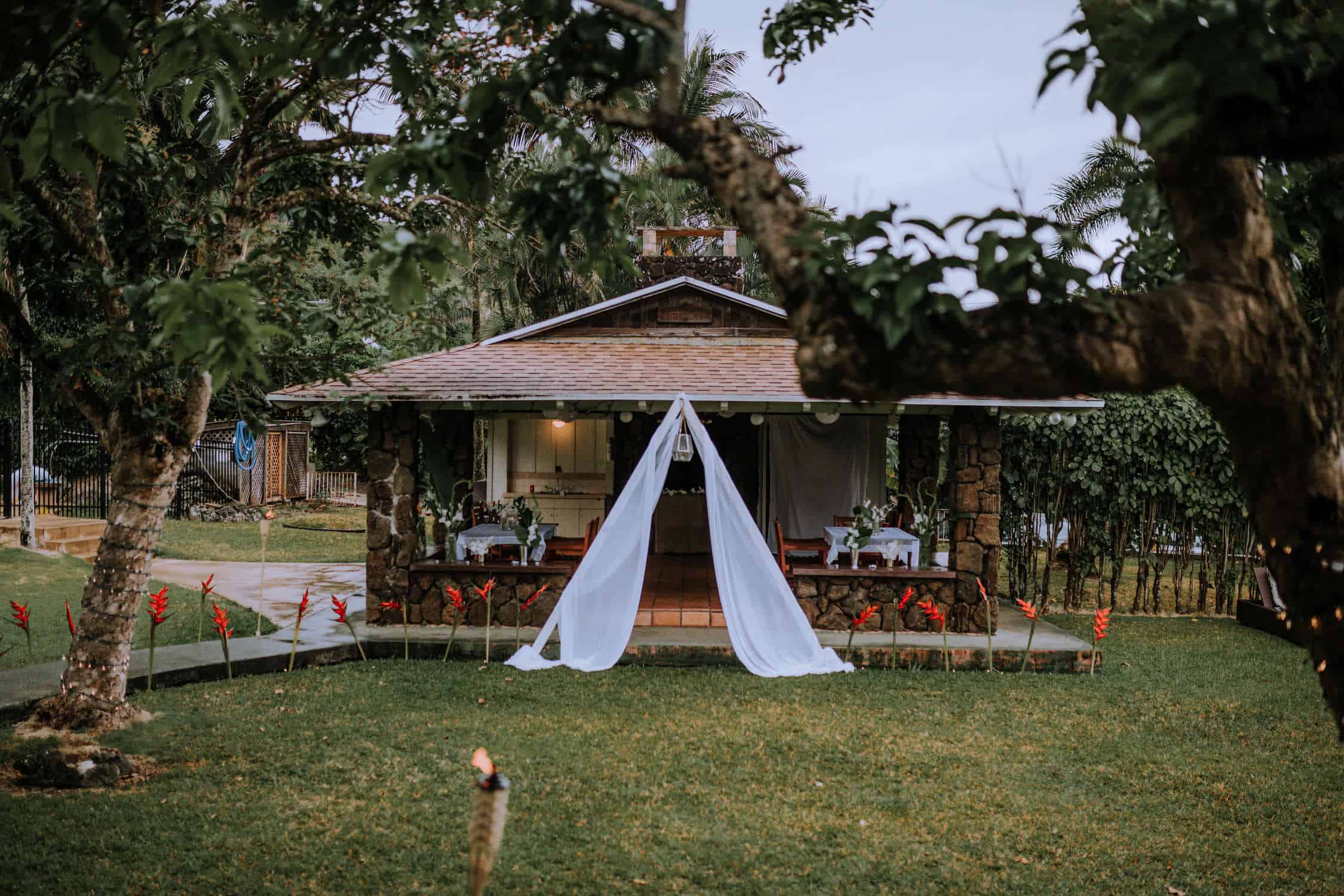 Having this all come together after planning for so long was such a dream come true for these lovers! They had friends & family travel from afar to witness their Elopement at a private home in Kaaawa. Stefanie & Joseph were a super laid back couple, down for whatever, wanted to head to the beach for photos in the pouring rain and had drinks + a dance party with their guests!