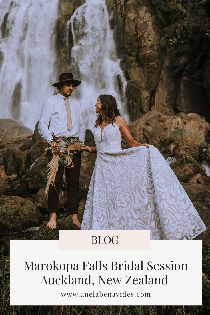 Destiny + Jarreau have been dating for years now and actually met at Raglan Beach. They had known eachother thru mutual friends but never actually met till spending the day at Raglan. They eventually after talking for a bit started dating! They were so dang cute together even though they’re not married they were down for this Bridal styled shoot! We hiked to Marokopa Falls in Auckland, New Zealand and I am so happy we made the trip over! We got entirely muddy, I lost my shoes in knee deep mud, we got wet from the hip down and slipped a few times in the water trying to carry our gear over but it was ALL SO WORTH IT!!!!