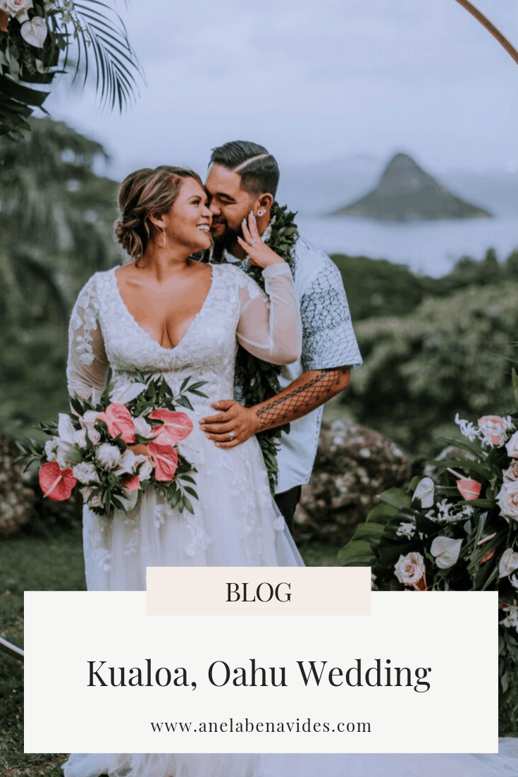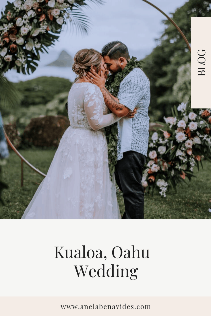 Pua’ena & Kyle had the SWEETEST Wedding at Paliku Gardens at Kualoa Ranch. Kyle was born and raised in Kahalu’u and in the Kualoa area and met Pua’ena. After only their first date Kyle was introduced to her family and she knew right away he was the one! They have spent 10 years together in a relationship and growing as a couple through the ups and downs.